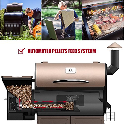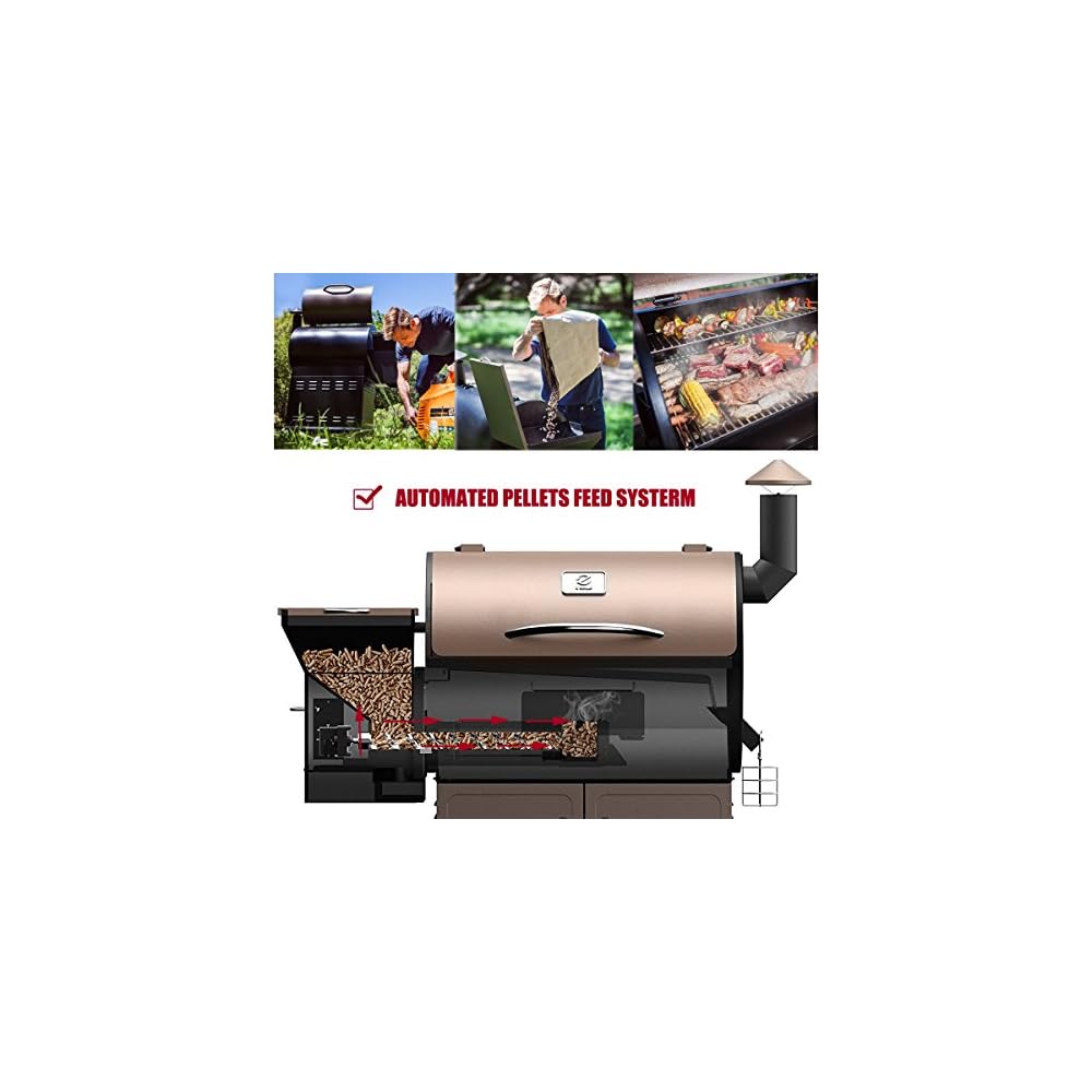 ✓Smart Smoke Technology— Set it and forget it, Automated electric feed system maintains temperature from 180ºF to 450ºF